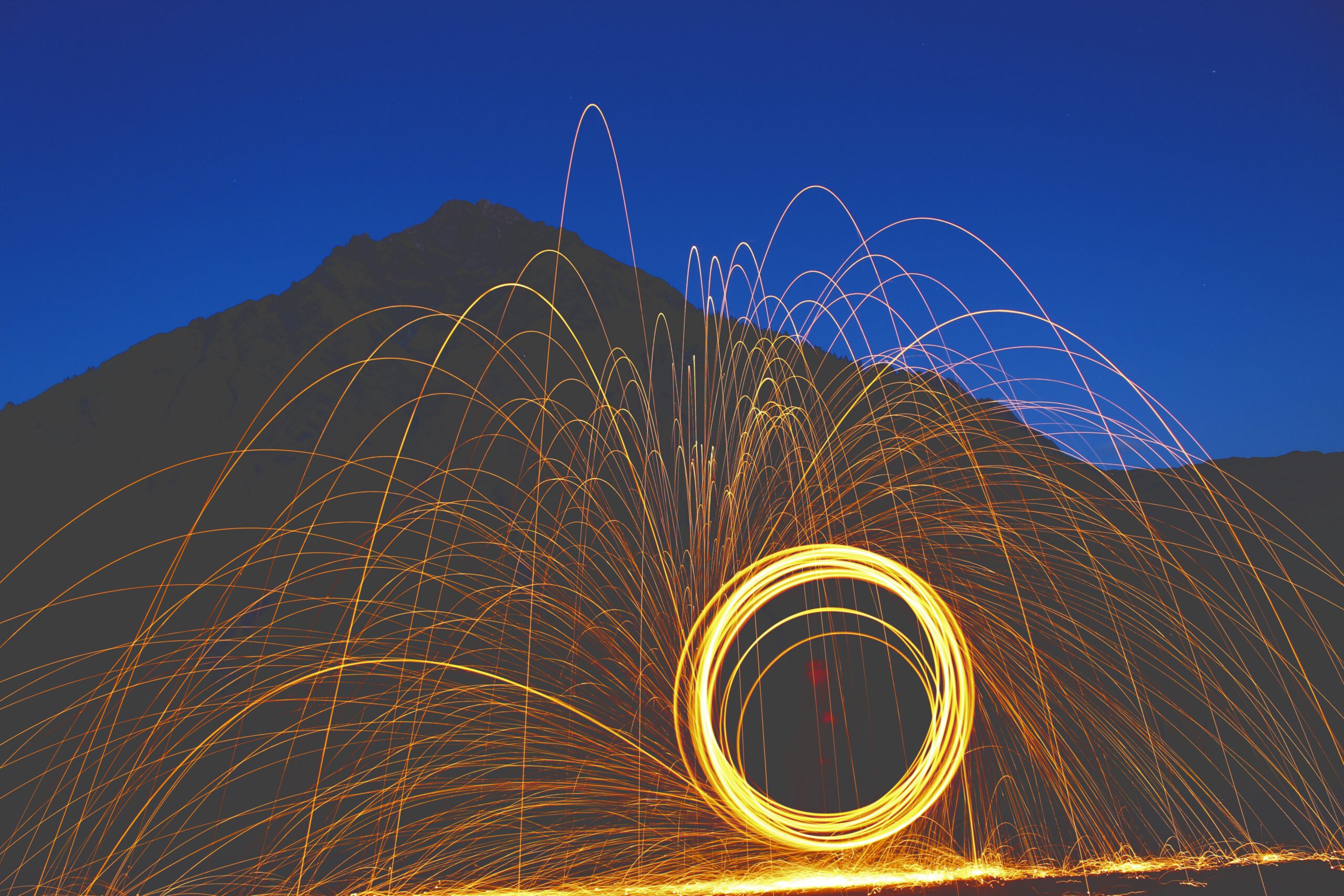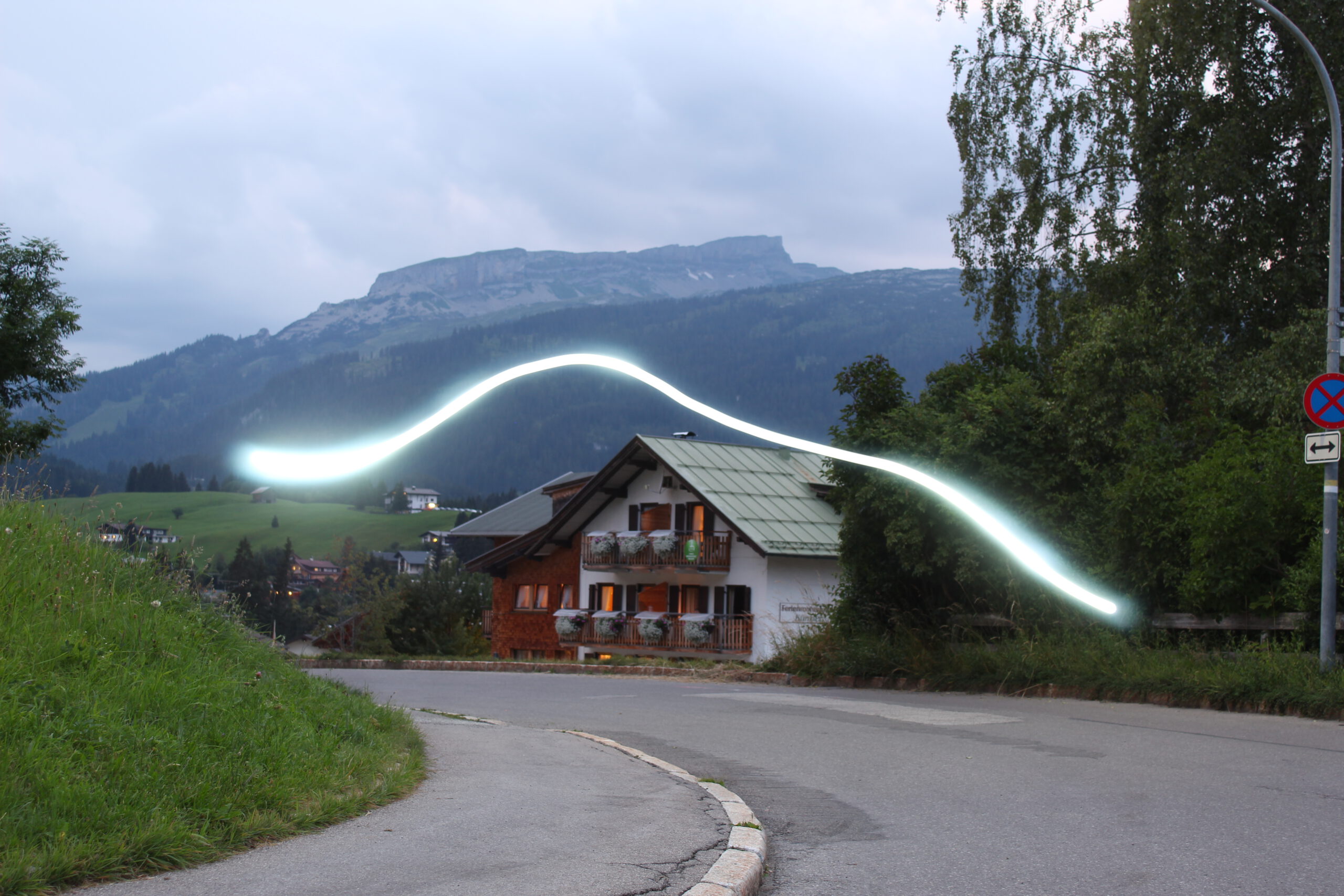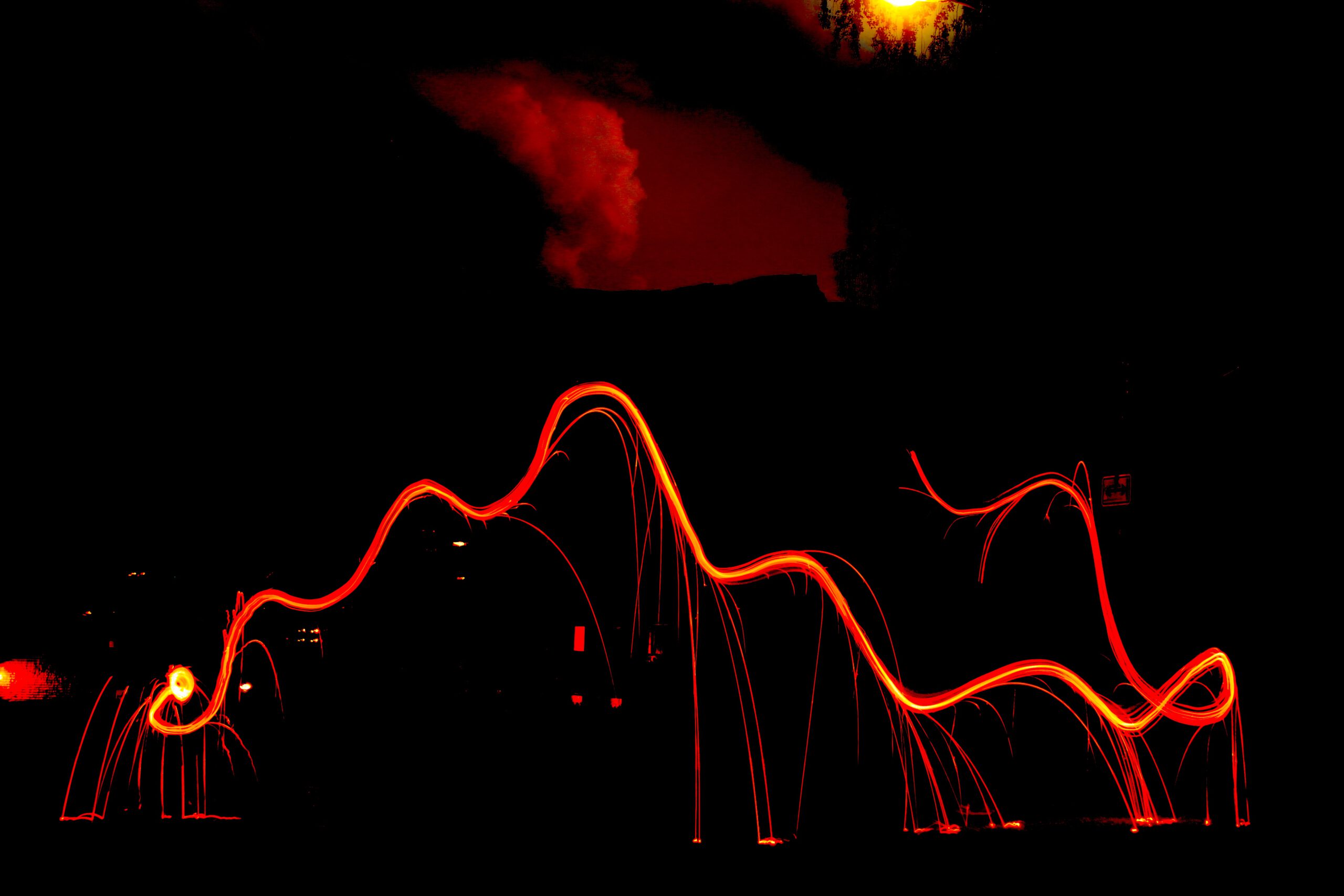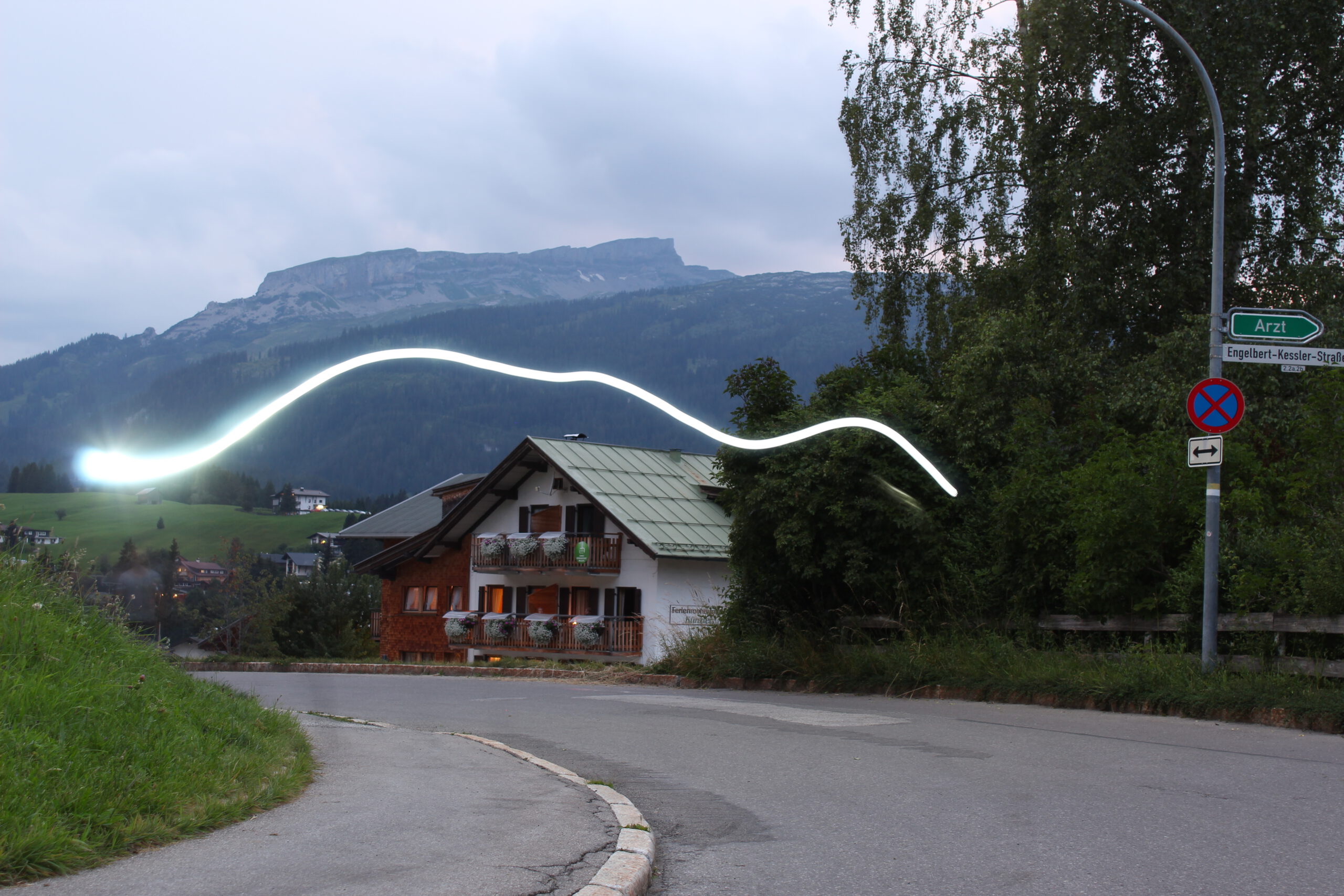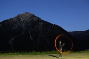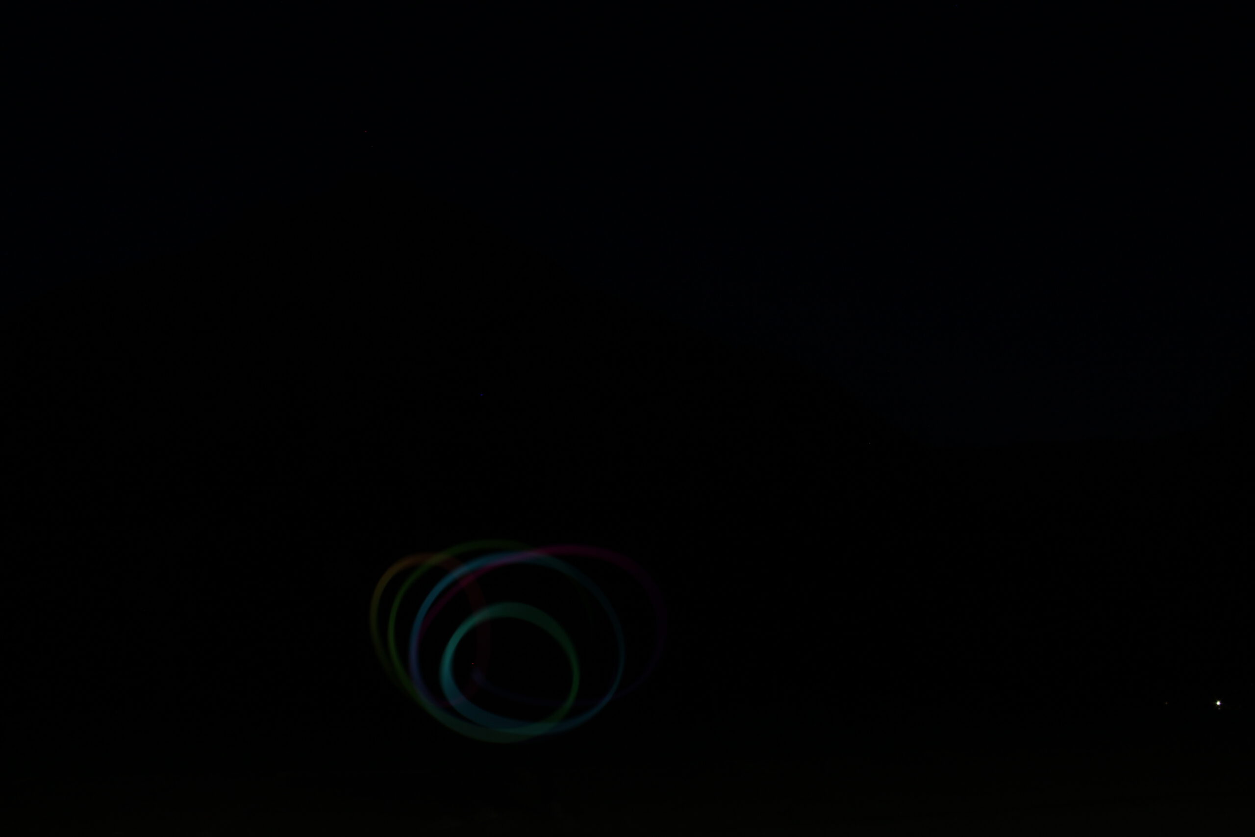 Die ersten Versuche sind nicht ganz so spektakulär geworden, doch mit der Zeit wurden die Bilder immer besser. Ich habe verschiedene Taschenlampen mit verschiedenen LED-Stärken ausprobiert, bevor ich erste Versuche mit Feuer wagte. Der Umgang mit dem Feuer war etwas schwierig, da man aufpassen musste, dass keine Funken ins Gras flogen.