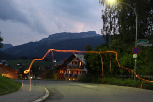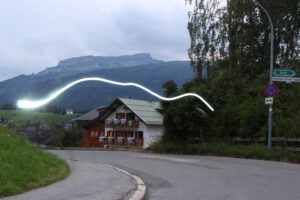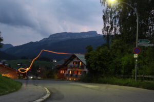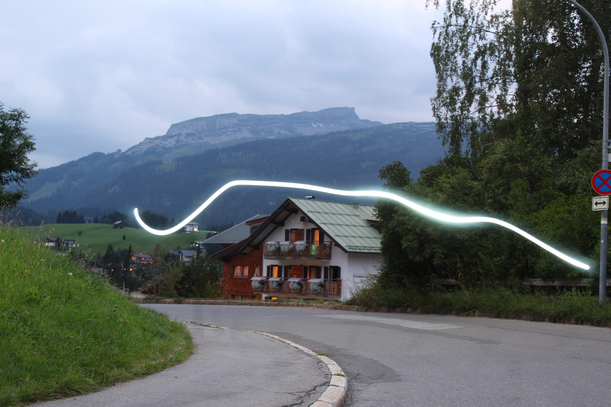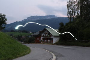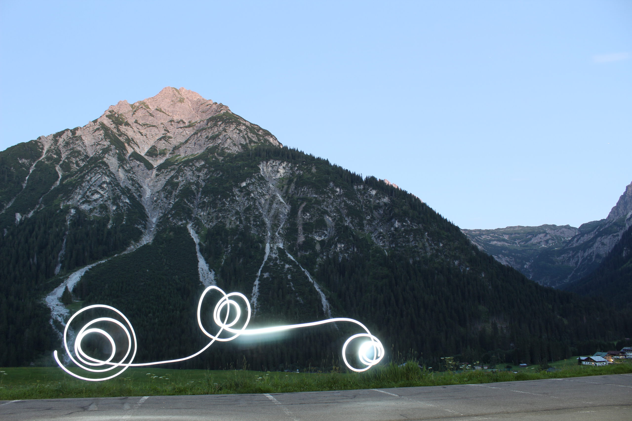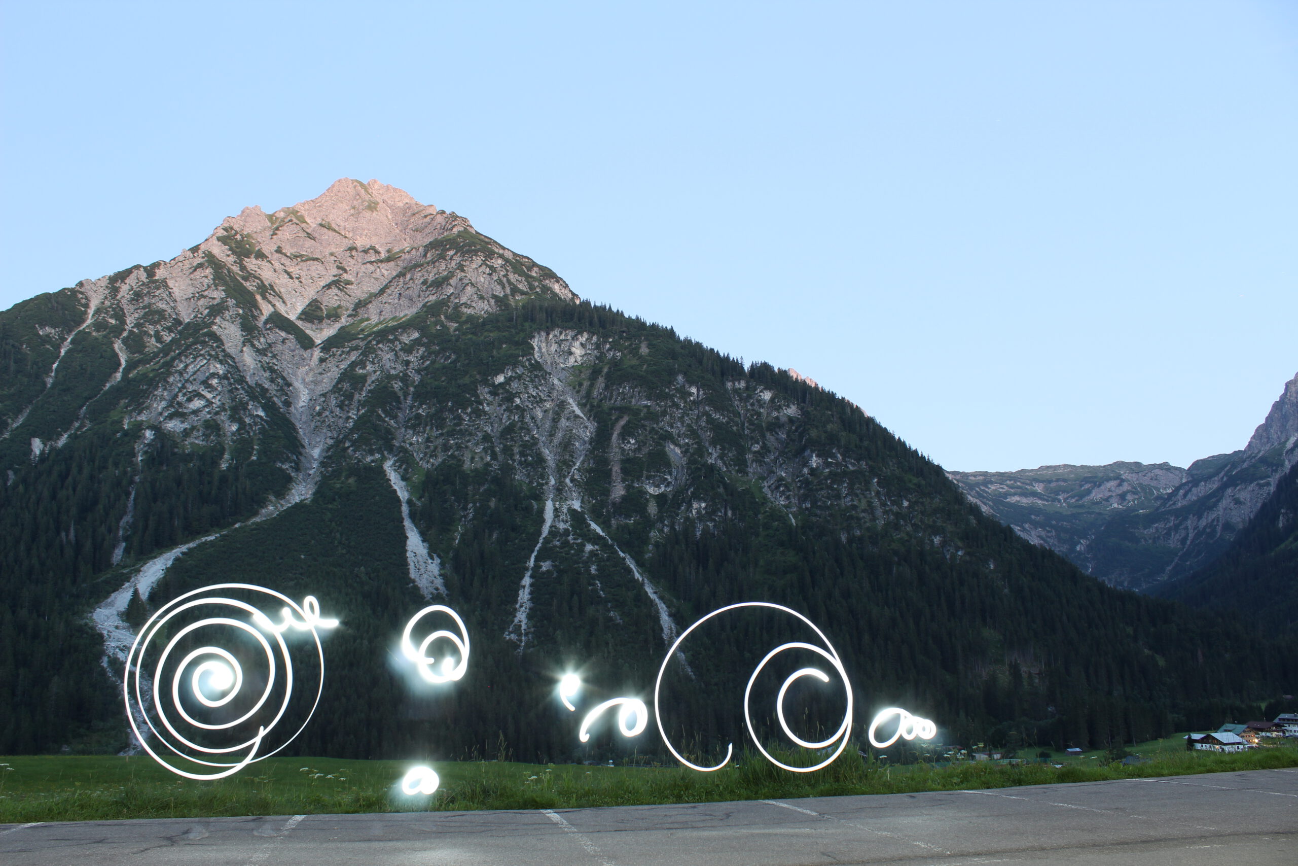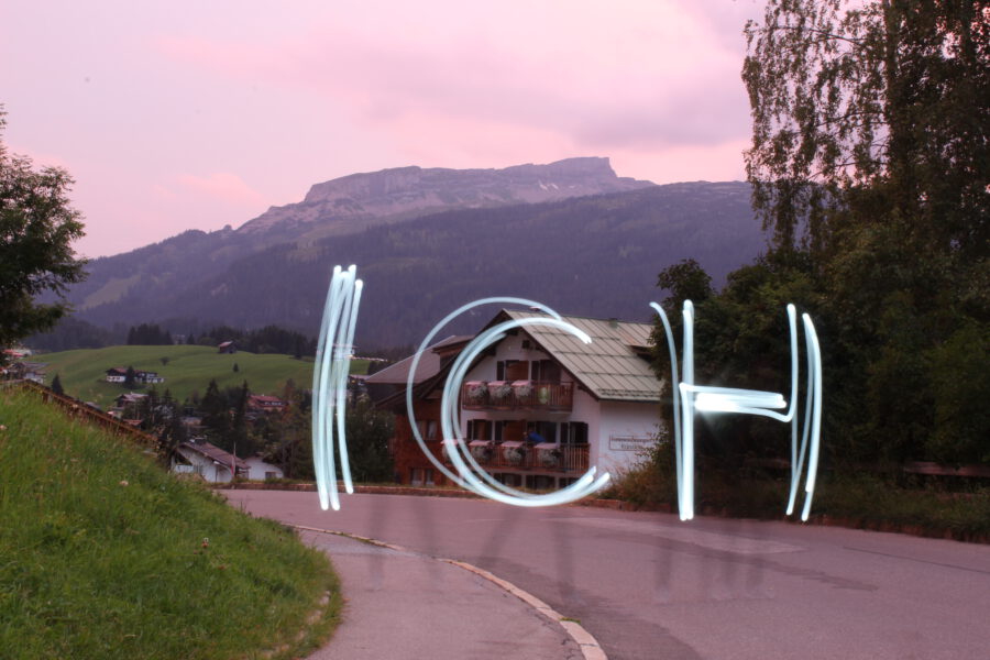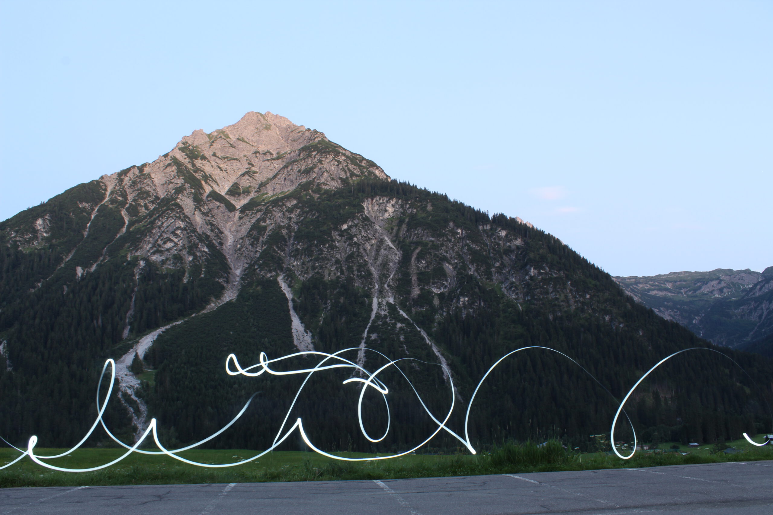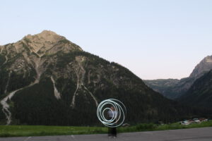 Ich habe angefangen mit ein paar Skizzen zum Thema „Ich und die Welt“, „Ich und die Berge“, „Wer bin ich?“. Mir war von Anfang an klar, dass ich etwas zum Thema Berge machen möchte, da die Berge wie mein zweites Zuhause sind, jedoch wollte ich nicht nur Skizzen machen und bin dann auf die Idee gekommen, zu fotografieren. Fotografieren ist meine größte Leidenschaft und Fotos mit Licht wollte ich schon immer ausprobieren. Warum also nicht in den Bergen? Also habe ich mein Stativ und die Kamera eingepackt und habe nach geeigneten Orten gesucht.