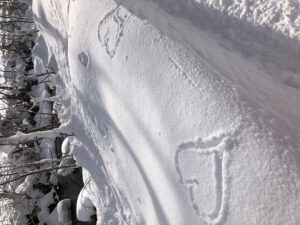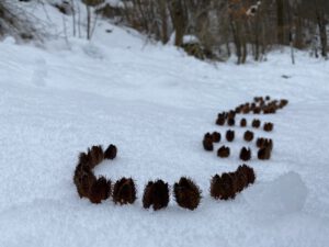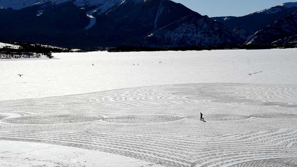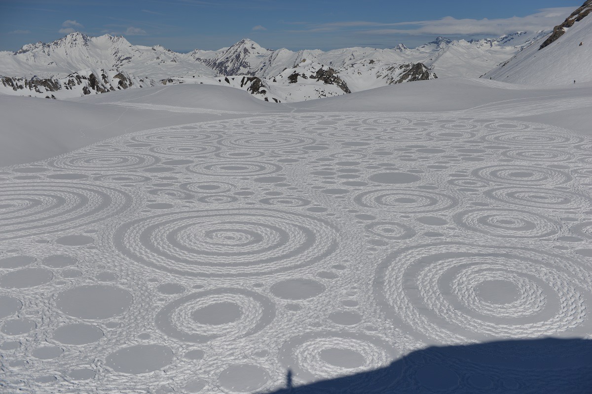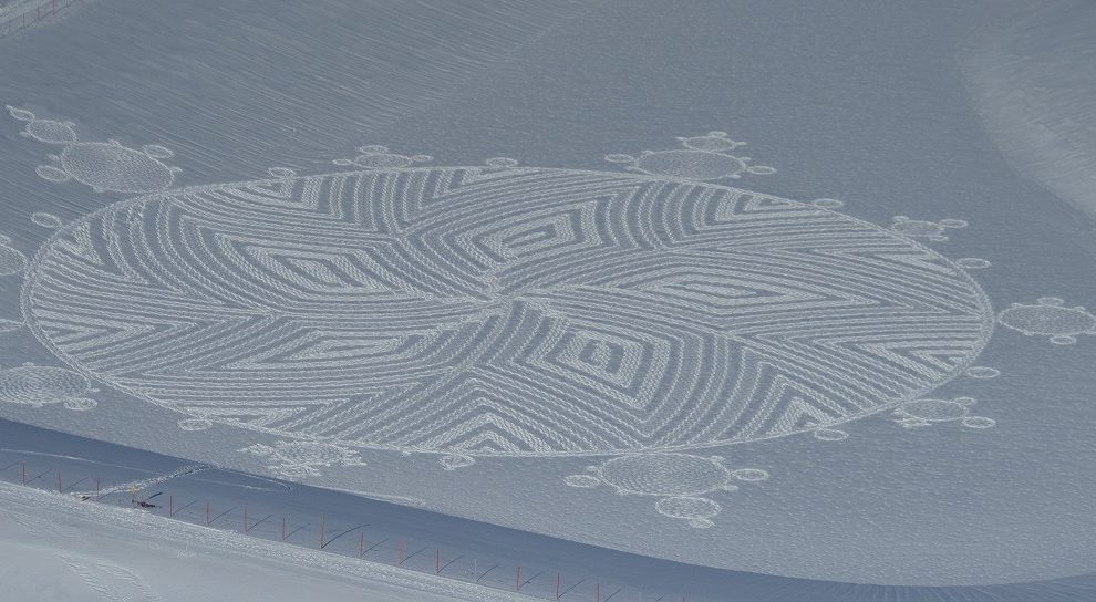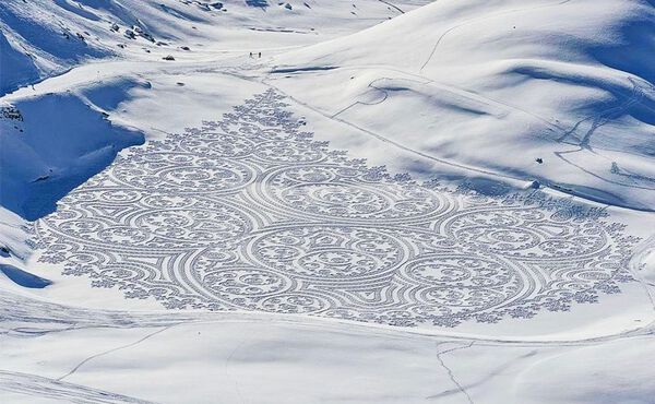 - „Ich sah nach draußen auf den zugefrorenen und schneebedeckten See und dachte sofort, dass ich dort ein Muster schaffen könnte. Sobald ich also die Möglichkeit hatte, als der See sicher zugefroren war, habe ich das gemacht. Mir wurde schnell klar, dass sonst niemand solche Designs im Schnee erschuf.“