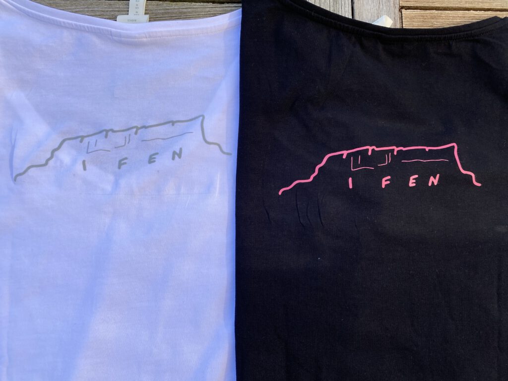 Hier ein Beispiel: links die Vorlage habe ich auf Paper gezeichnet und rechts anschließend auf die T-Shirts gedruckt.